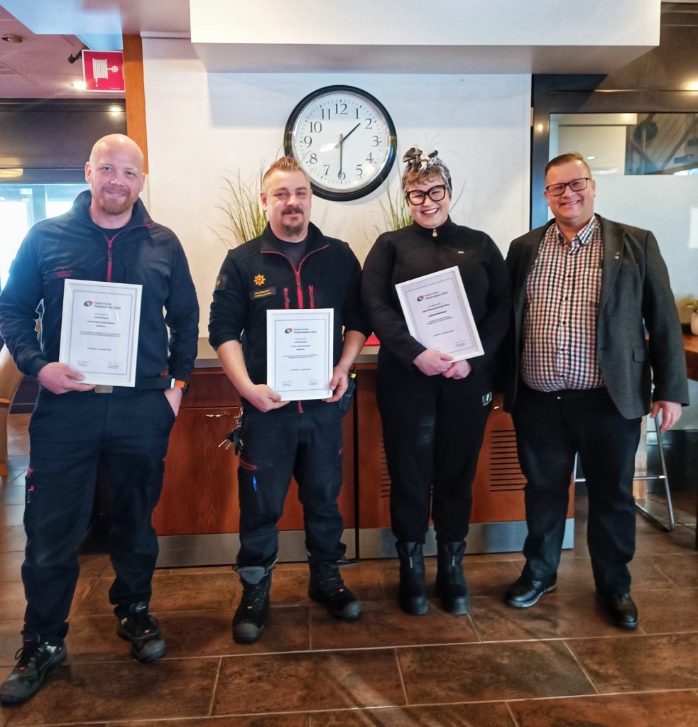 Sami Lehtonen (Kuopion kaupungin satamapäällikkö ansiokkaasta toiminnasta turvallisuustietojen viestinnässä kansalaisille sekä Marko Hassinen, Juha Laitinen, Jari Mikkonen ansiokkaasta innovaatiosta sähköpalojen sammuttamisessa.